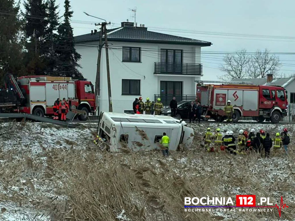 — Według wstępnych ustaleń kierujący busem marki Mercedes na łuku drogi zjechał z jezdni, gdzie doszło do przewrócenia pojazdu na prawą stronę. W chwili zdarzenia w pojeździe przebywało ośmiu pasażerów — poinformował nasz portal mł. asp. Daniel Bułatowicz, rzecznik prasowy KPP w Bochni.